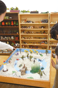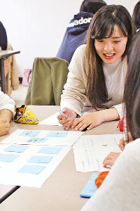 課程共通科目(「教育支援概論」など各コースの学生が協働で学ぶ科目)では、教育支援の基礎的な知識の獲得と、チームアプローチ力を育成します。また、様々な教育現場をフィールドにして高度な実践力を身につけるために、コース別選択必修科目として、フィールド系科目が開設されていることも特色のひとつです。さらには、学校教育にフォーカスした内容や学校内外での様々な教育課題に関する内容を,学校教育教員養成課程と教育支援課程の学生が共通に学ぶ横断的な科目として「教育創世科目」が用意されています。